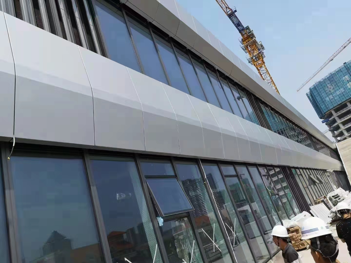 在安裝過(guò)程中抗外力性能超群。表面涂層采用氟碳噴涂涂料,保證表面色澤均勻,抗紫外線輻射,抗氧化,超強(qiáng)耐腐蝕,鋁單板安裝應(yīng)按板塊分配圖上板號(hào)安置就位,明膠縫部位安裝角碼組裝好,并檢查相鄰兩塊板角碼是否錯(cuò)開(kāi),試裝檢查其水平度、垂直度,然后用不銹鋼螺栓裝配,試固定在主副龍骨上,調(diào)整橫豎縫間隙符合要求再固定。